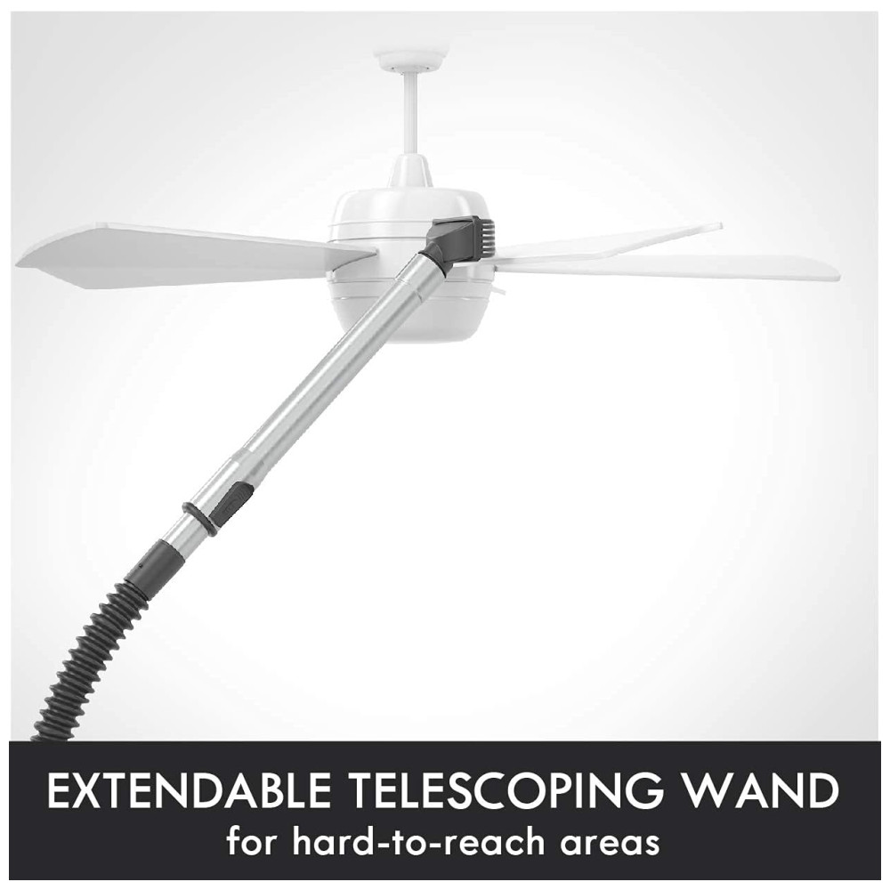 Alcance Estendido Com uma mangueira flexível e uma varinha de alumínio leve, este aspirador alcança até 3 metros, facilitando a limpeza em locais altos e de difícil acesso.