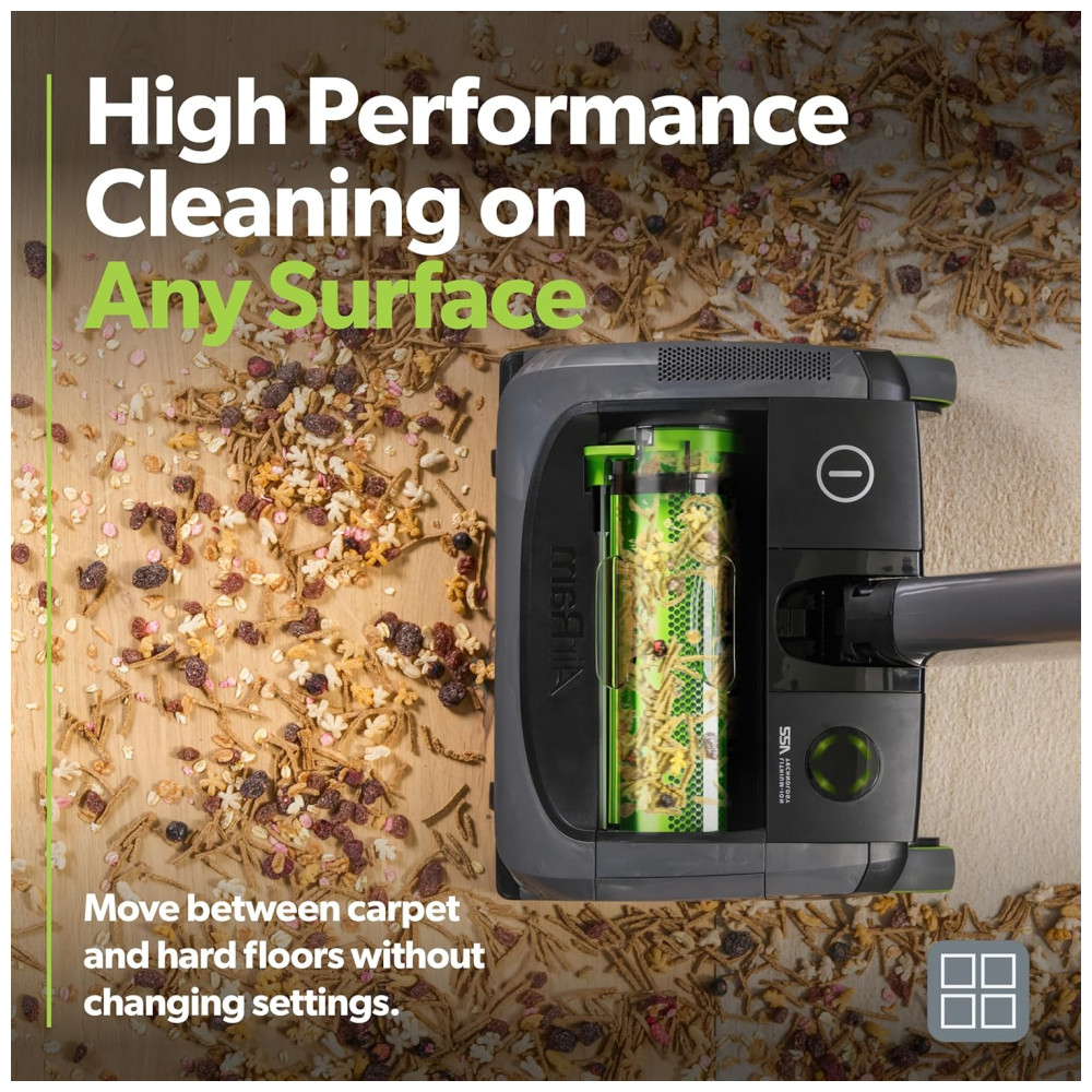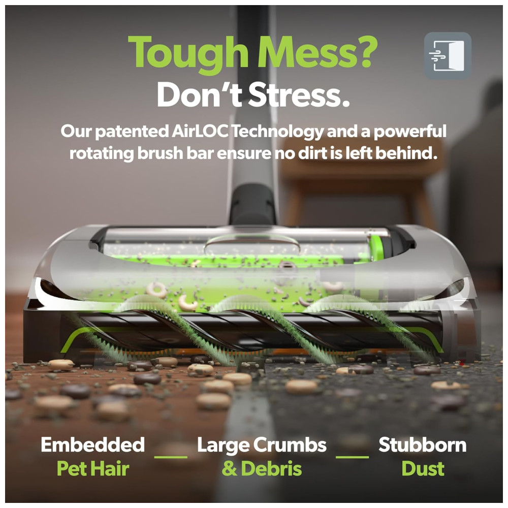 Equipado com a tecnologia AirLOC, que cria uma vedação na passada de volta, ele remove facilmente pelos e poeira fina.