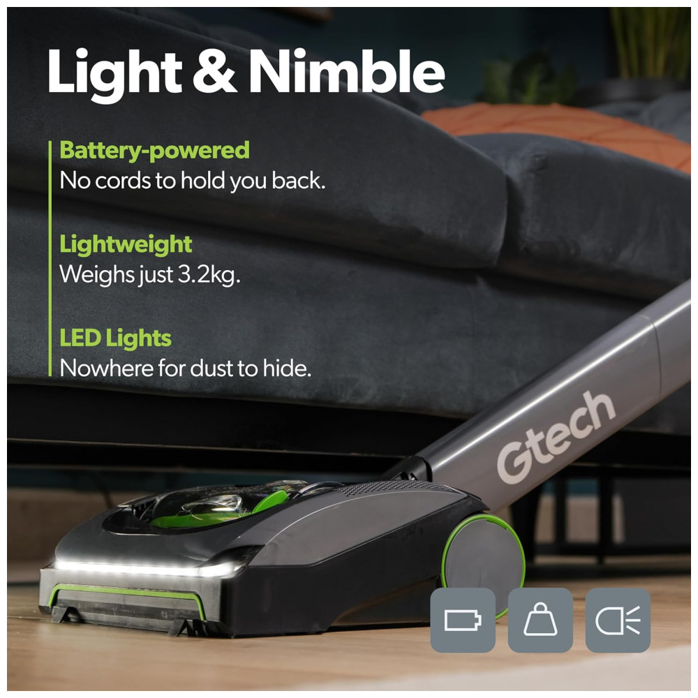 A Gtech, conhecida por facilitar tarefas domésticas como aspirar, garante praticidade e eficiência.